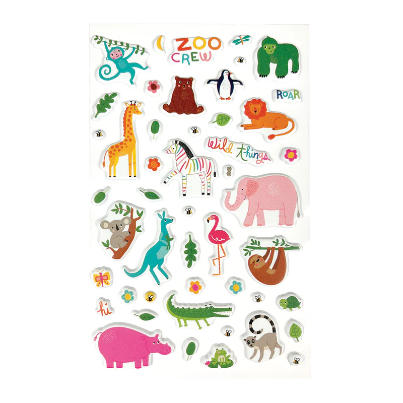 Această foaie de autocolante umflată este plină de creaturi adorabile pe care le-ai vedea la grădina zoologică preferată. Folosiți această foaie de autocolante pentru a vă decora caietul, dulapul sau jurnalul. Acest echipaj al grădinii zoologice va aduce cu siguranță un gust de sălbăticie lucrurilor tale!