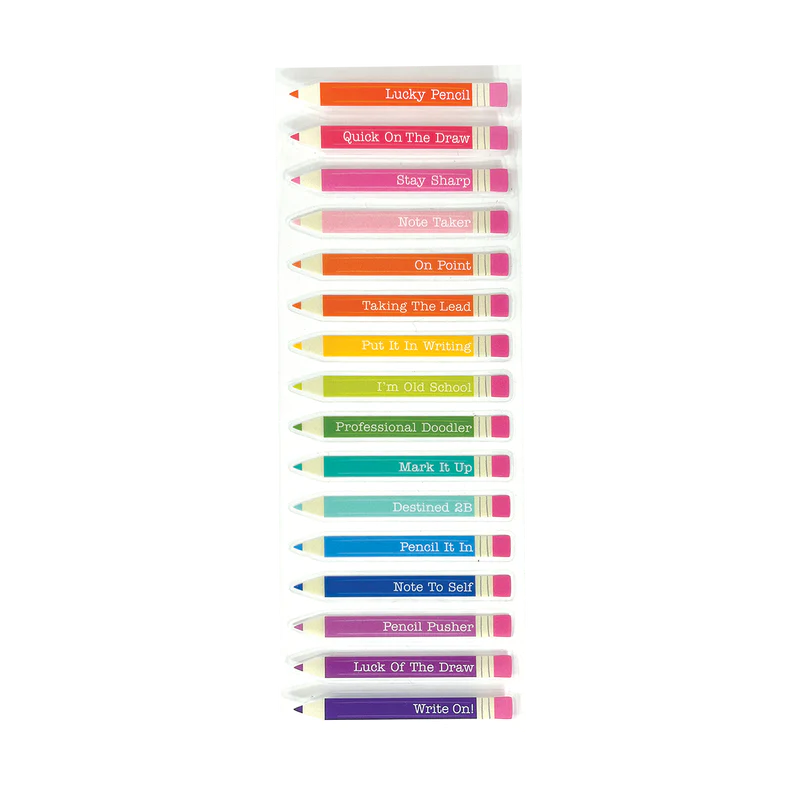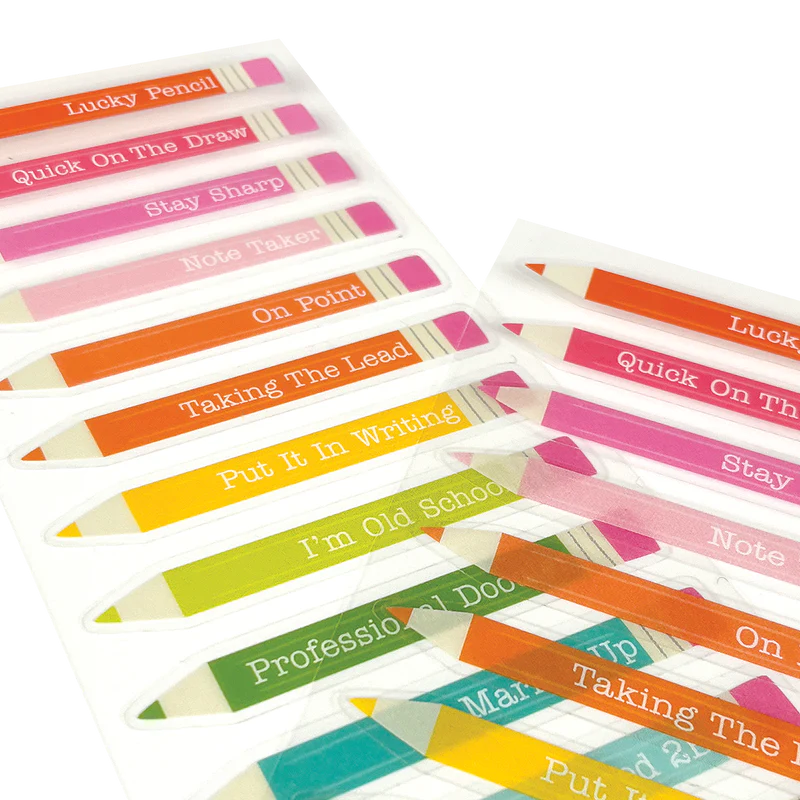Autocolante în creion care vin cu propriile lor mesaje adorabile și stupide! Spune-ne „Pencil Pushers”, dar trebuie doar „Put it in Writing”, că aceste două foi de autocolante de vinil sunt o modalitate super distractivă de a adăuga personalitatea necesară rechizitelor de birou și școlare plictisitoare! Așadar, de ce să nu le spui prietenilor tăi că „Preiei conducerea” și le-ai cumpărat tu și lor aceste autocolante „Creion norocos”!