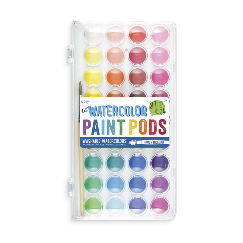 Un set frumos de acuarele, care include 36 de culori și o pensulă cu vârf fin. Practic ambalate, pot fi transportate și luate cu ușurință în călătorie. Vopselele sunt lavabile, nu lasa pete pe haine.