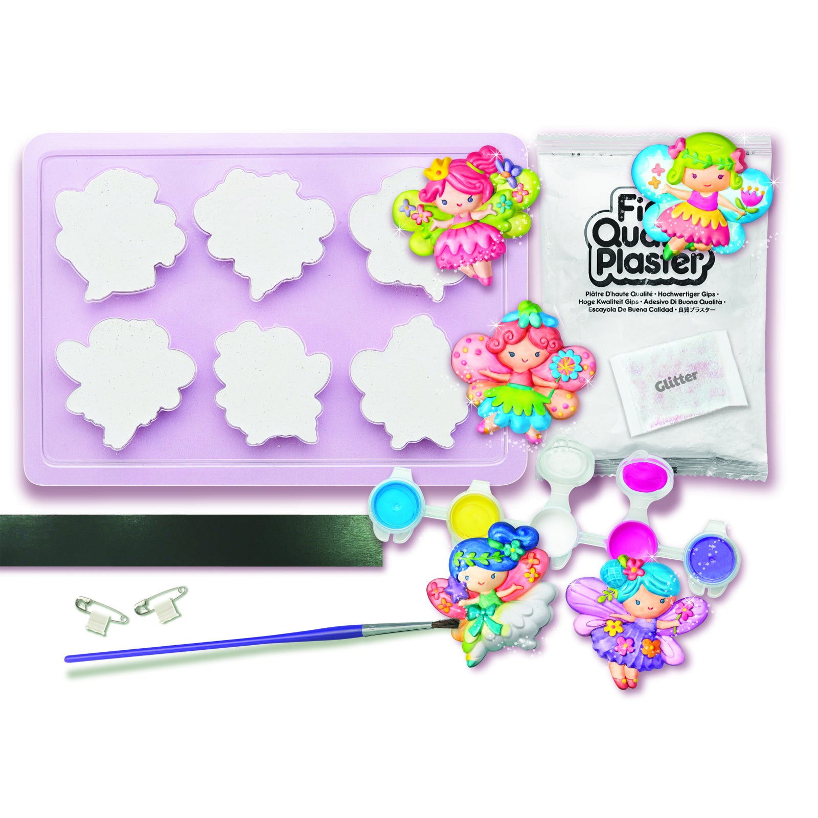 Conține 1 matriță cu 6 modele, 1 pungă de ipsos de calitate fină, 1 bandă magnetică, 2 știfturi, 1 bandă de vopsea cu 5 culori, 1 pensulă, 1 pachet de sclipici și instrucțiuni detaliate. Conținut suficient pentru realizarea a 6 magneți sau ace.