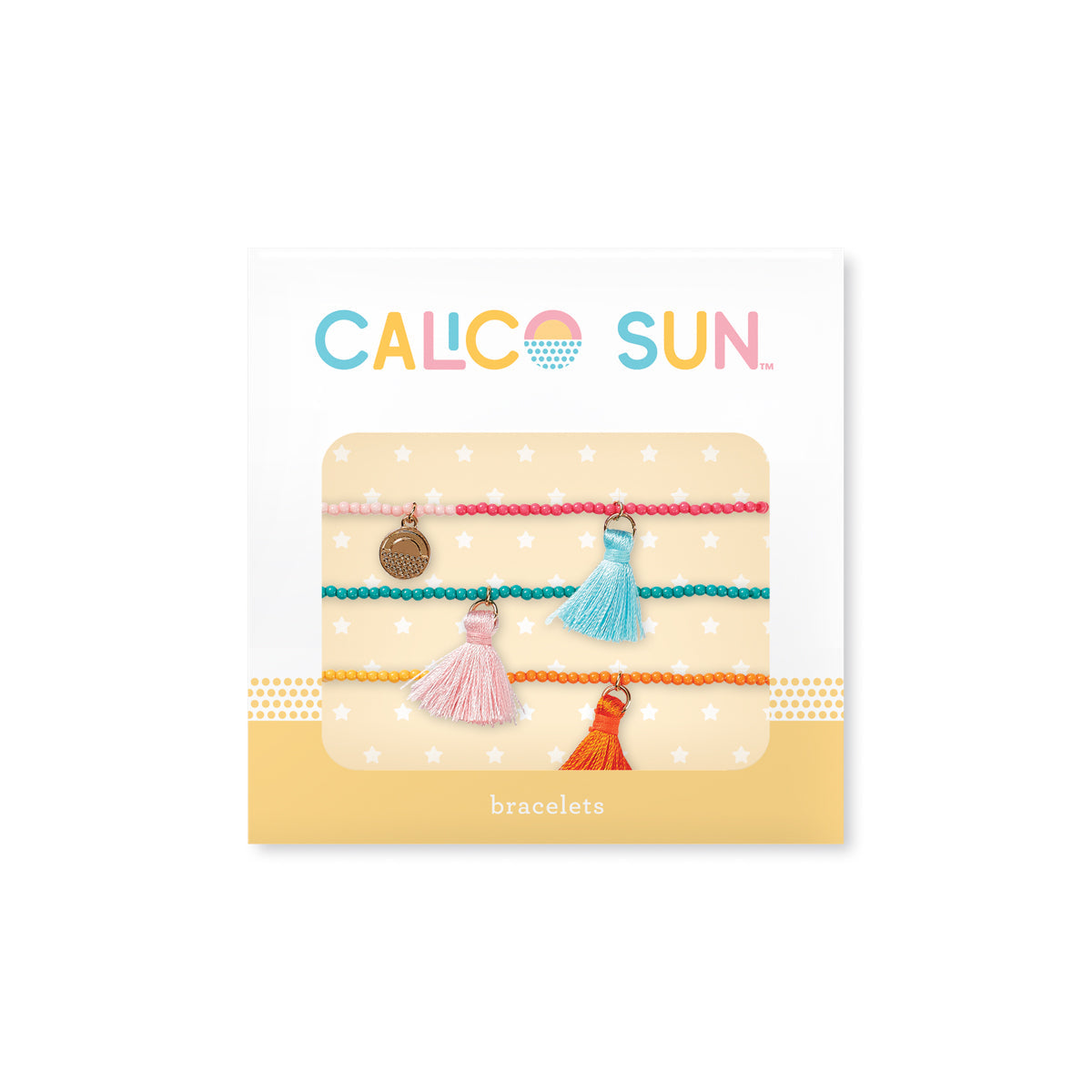 Făcut pentru a îmbunătăți orice ținută cu culori portocaliu, galben, verde, albastru și roz și multe altele. În plus, la una dintre benzile de mărgele este atașat un mic charm Calico Sun.