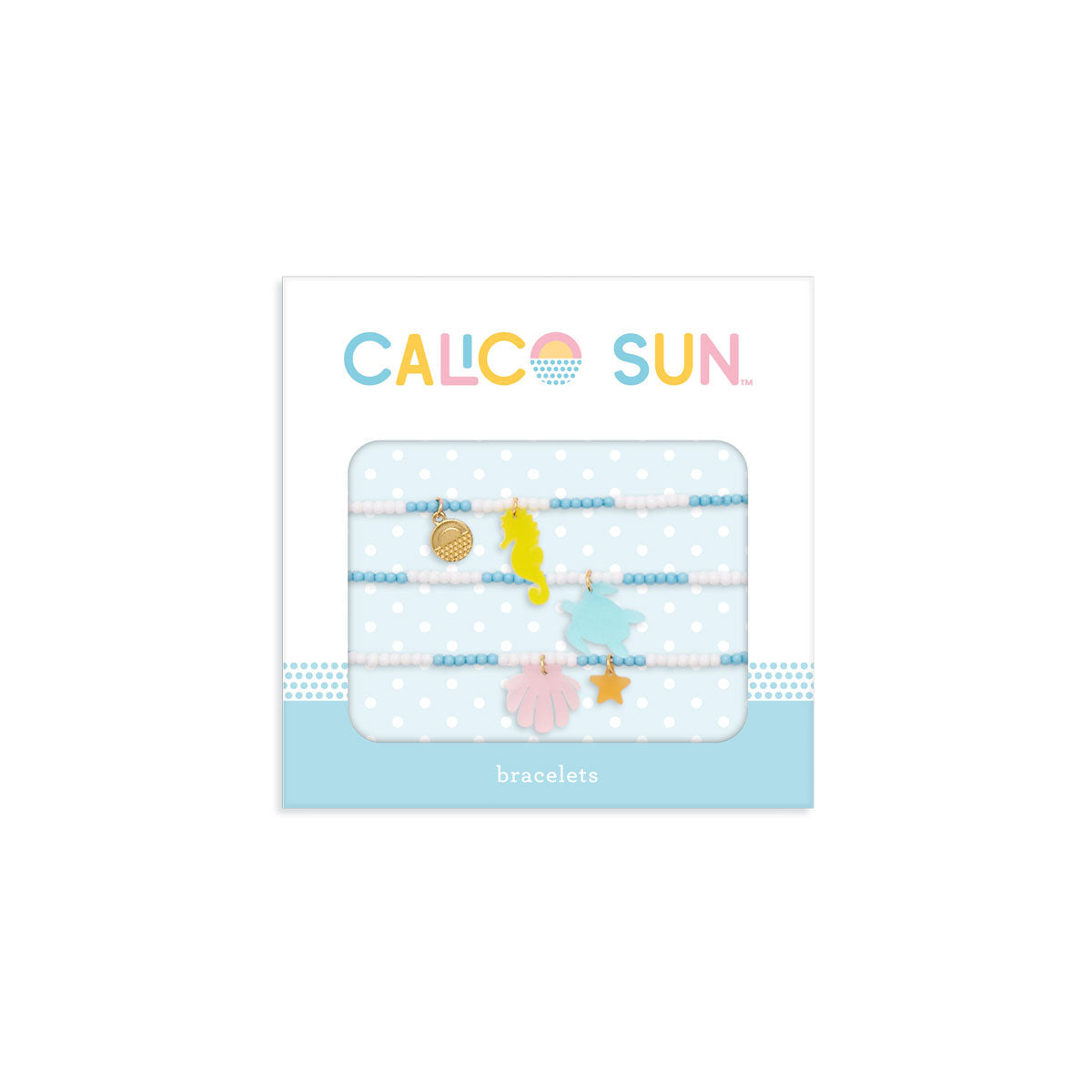 • Brățara 2: Căluț de mare galben și breloc cu logo Calico Sun auriu