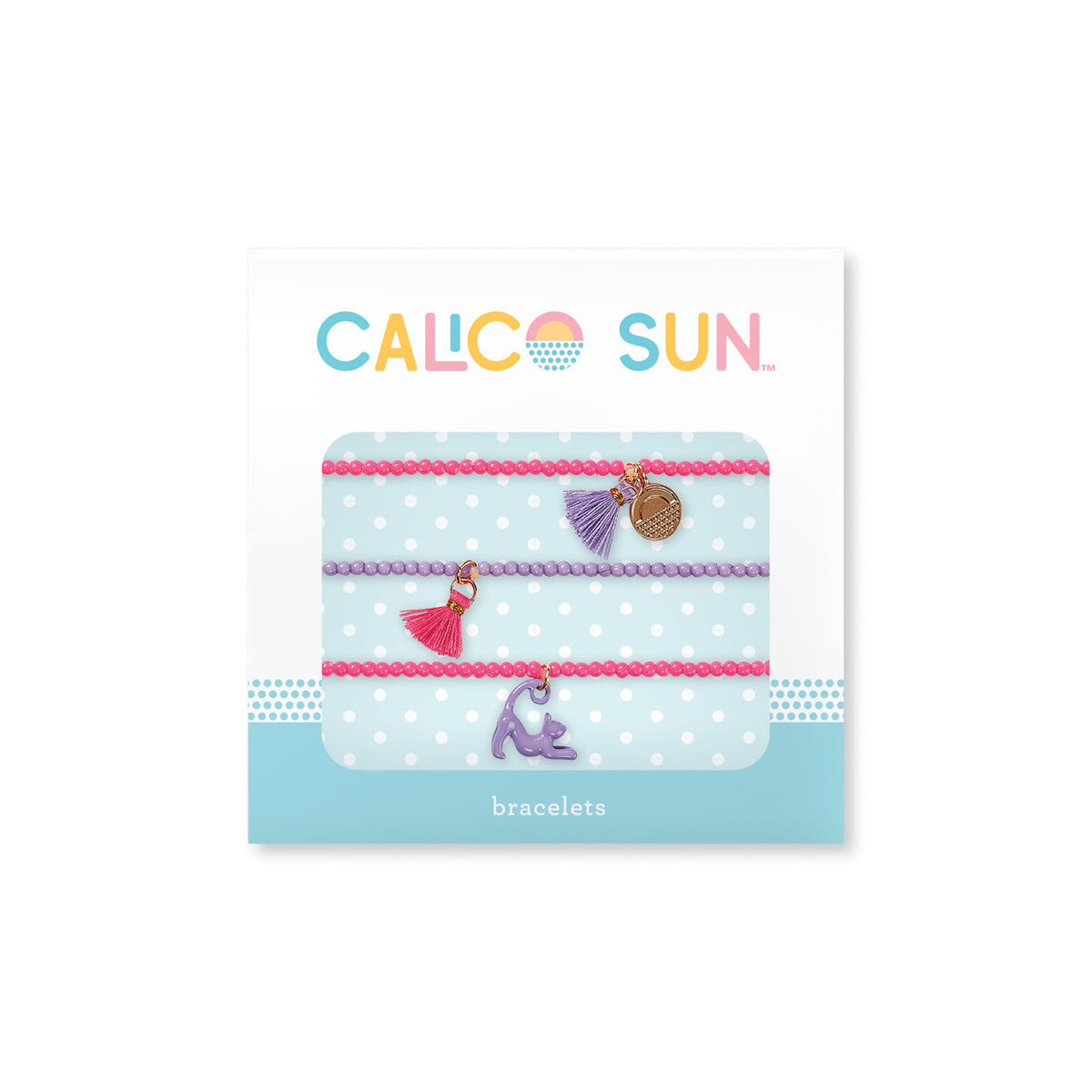 Pentru persoana iubitoare de pisoi, această frumoasă brățară cu farmec cu pisici violet emailate trebuie să fie stratificată cu brățările cu margele asortate. Ciucurii incantatori roz si violet aduc impreuna culorile complementare ale celor 3 bratari. Toate cele 3 brățări sunt pe benzi elastice pentru a asigura o potrivire perfectă. Pentru a-ți completa perechea de ansamblu cu colierul Zoey Cat.