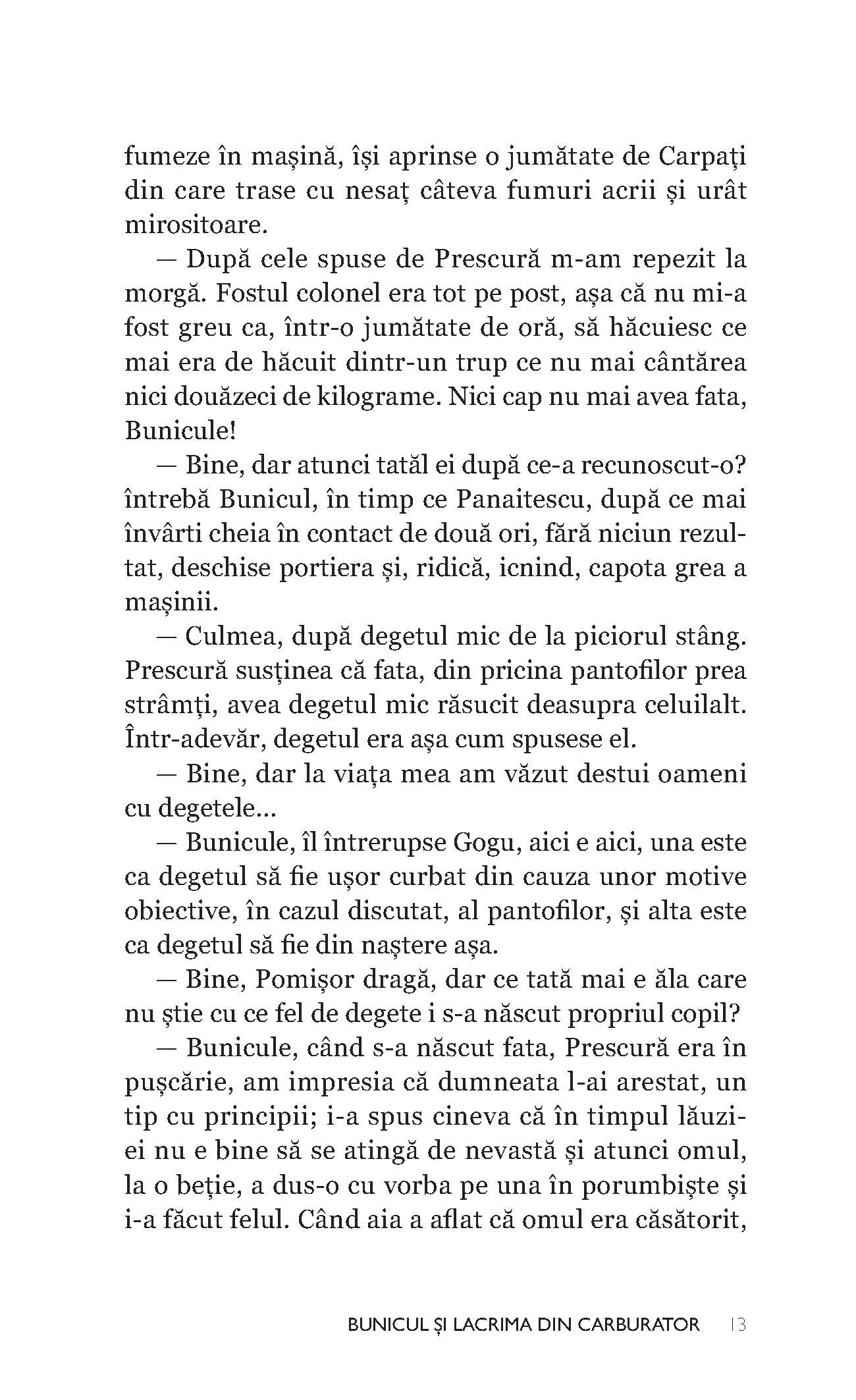 Medicul legist Gogu Pomisor le cere ajutorul Bunicului și lui Panaitescu, acum detectivi particulari, pentru a desluși enigma: cine este femeia moartă și unde se află adevărata fată a părintelui îndurerat? Romanul explorează această intrigă complexă, plină de întorsături de situație, într-un context social și politic post-revoluționar.