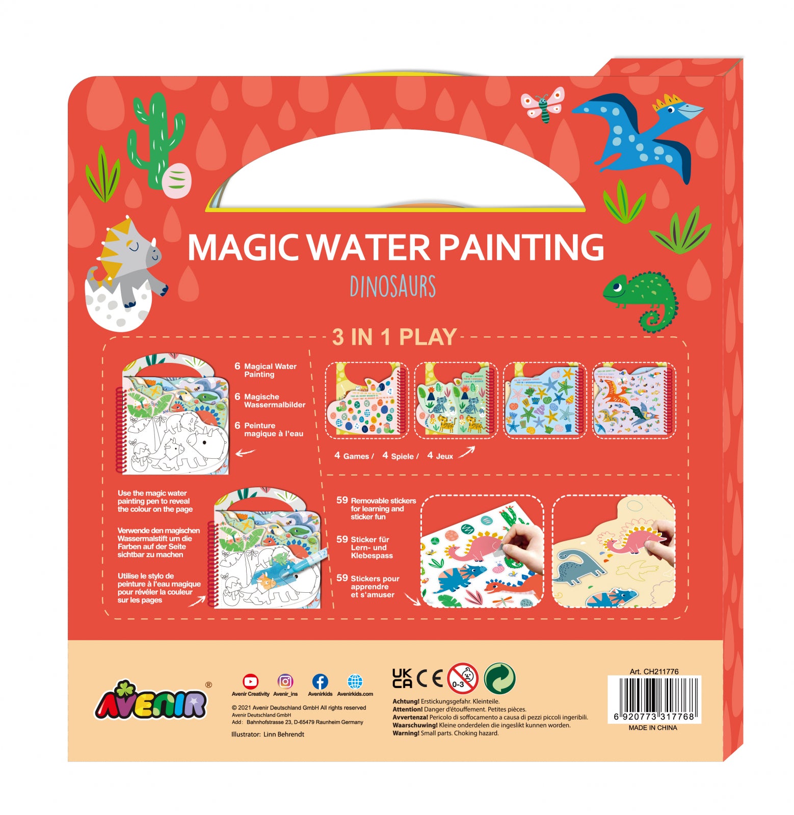 Cu aceasta carte Magic Water Paiting puteti lua oriunde activitățile fabuloase de pictat cu apă cu tematică dinozauri.