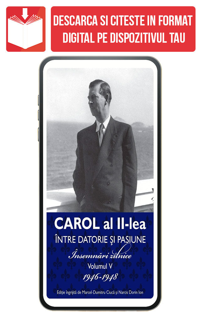 Carol al II-lea: Între datorie și pasiune. Însemnări zilnice Volumul V acoperă perioada 1946-1948, oferind o perspectivă detaliată și personală asupra vieții regelui Carol al II-lea în exil. Această perioadă reflectă dificultățile și provocările cu care s-a confruntat regele departe de tron, într-o Europă devastată de război și într-un context politic global complex. Însemnările sale zilnice dezvăluie gânduri intime și observații despre evenimente politice majore, relații personale și eforturile de a-și menține influența.