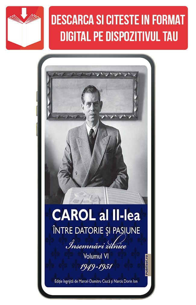 Carol al II-lea: Între datorie și pasiune. Însemnări zilnice Volumul VI acoperă perioada 1949-1951, oferind o perspectivă detaliată și personală asupra ultimilor ani din viața regelui Carol al II-lea. Acest volum final al seriei de însemnări zilnice dezvăluie gândurile și reflecțiile regelui în timpul exilului său, marcate de încercări nereușite de a prelua conducerea diasporei române și speranța sa, de multe ori zadarnică, de a reveni pe tronul României.