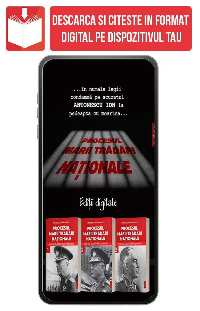 Descopera o privire exhaustiva in istorie cu pachetul nostru de carti in format digital, ePub, "Procesul marii tradari nationale: Maresalul Antonescu in fata istoriei". Acest set captivant, alcatuit din trei volume, aduce la lumina cele mai importante documente din timpul anchetei si procesului maresalului Ion Antonescu.