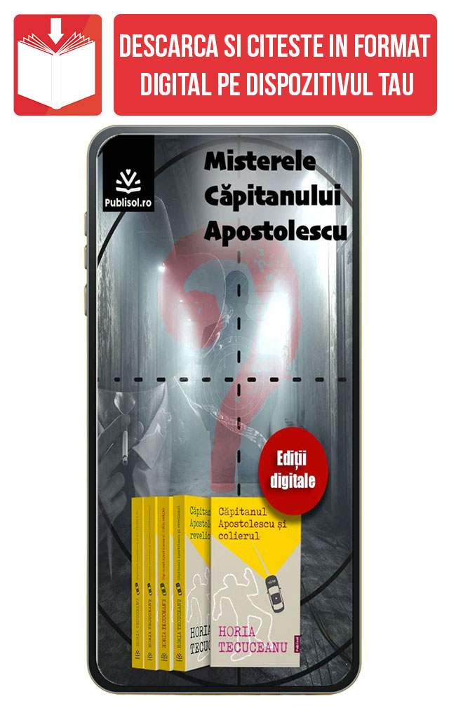 Plonjează în lumea captivantă a investigațiilor și misterelor alături de faimosul căpitan Apostolescu, creat de renumitul autor Horia Tecuceanu. Pachetul „Misterele Căpitanului Apostolescu” în format digital ePub include cinci dintre cele mai intrigante romane ale autorului, fiecare poveste fiind un amalgam de suspans, inteligență și acțiune. Acest pachet este ideal pentru iubitorii de literatură polițistă care doresc să descopere universul fascinant al unui personaj emblematic.