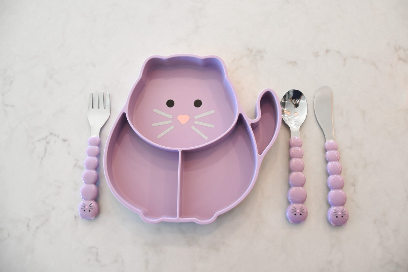 Farfurie Compartimentată din Silicon cu Ventuză, Melii, Pisica
