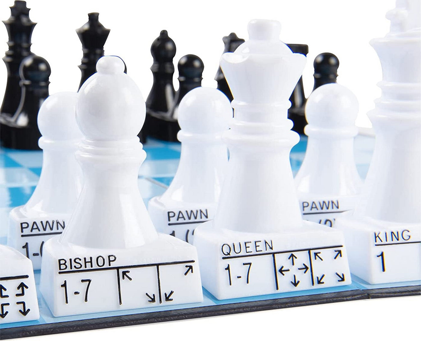 Învatarea jocului de sah este usoara cu piese marcate. Fiecare piesa include numele si directia in care se poate deplasa.Ideal pentru 2 jucatori!