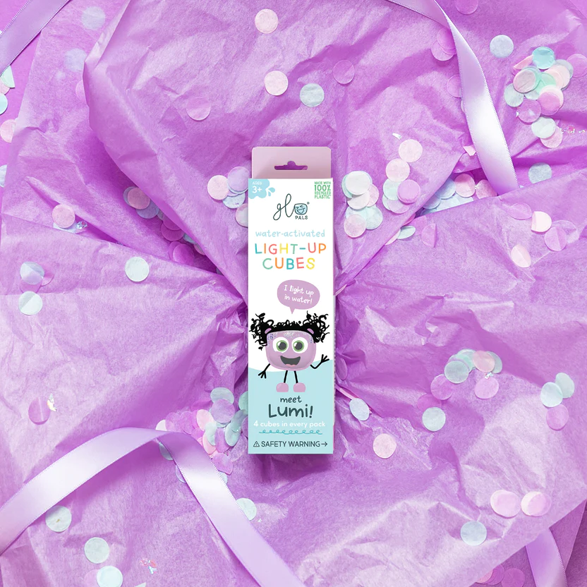 Glo Pals si Glo Cubes sunt jucării senzoriale luminoase activate de lichid. Aceste jucării vin fiecare cu propria lor personalitate și culoare. Pippa strălucește verde, Alex strălucește galben, Lumi strălucește violet, Sammy strălucește roșu și Blair strălucește albastru.