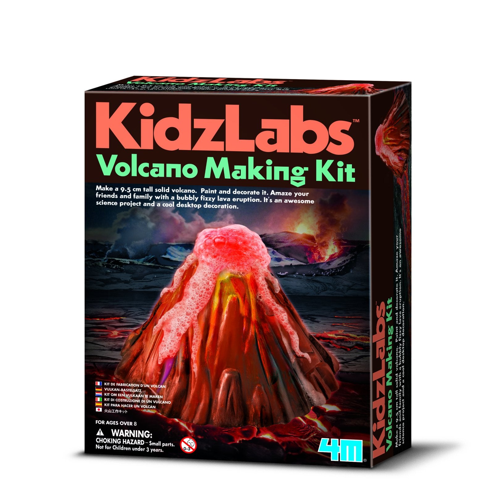 Conține 1 matriță vulcanică solidă din plastic (se cere asamblare), 2 amestecuri de ipsos de calitate fină, 1 bandă de vopsea de șase culori, 1 pensulă, 1 agitator, 1 foaie de grafice distractive pentru decorare, 1 set de instrucțiuni cu știința vulcanilor, fapte amuzante și rețetă. pentru erupție.