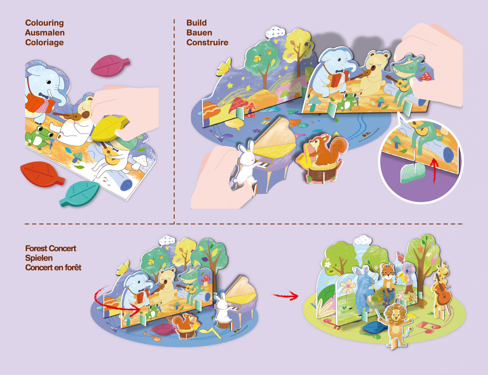 Setul de activitate cu creioane distractive Forest Concert este conceput pentru ca copiii mici să deseneze, să creeze și să se exprime în culoare!