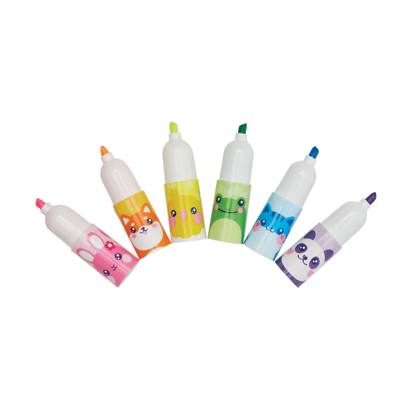 Acest set de markere stivuibile sunt instrumente de studiu care provoacă chicoteli! O creatură diferită este prezentată pe fiecare dintre cele șase mini markere, proiectate în culoarea markerului lor. Există un iepuraș roz, o vulpe portocalie, un pui galben, o broască verde, o pisică albastră și un panda violet. Acest teanc de șase markere cu animale face să vă organizați studiile după culoare ușor și distractiv!