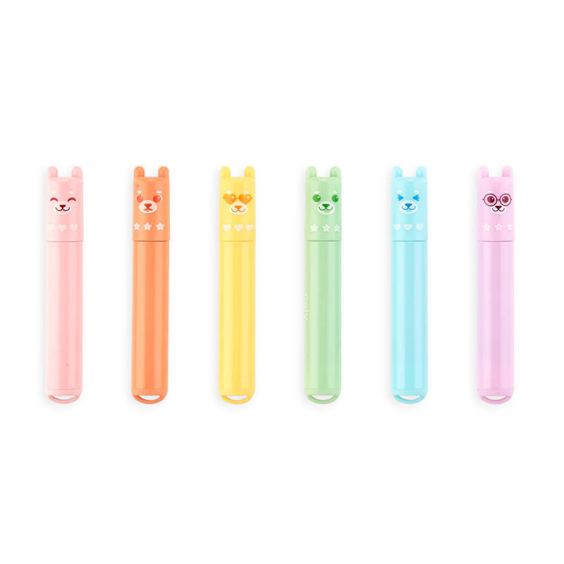 Mini markere de evidentiere , 6 arome de fructe diferite si culori de cerneala neon , Fata de urs diferita pe fiecare marker