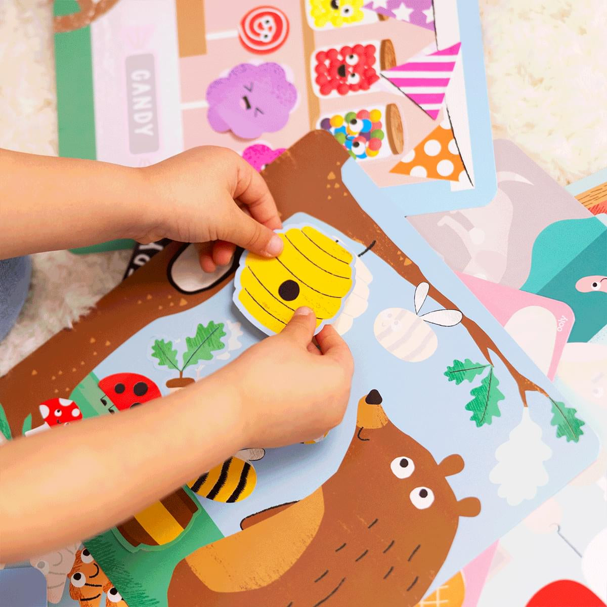 • Setul include 12 scene în pădure și peste 100 de autocolante
