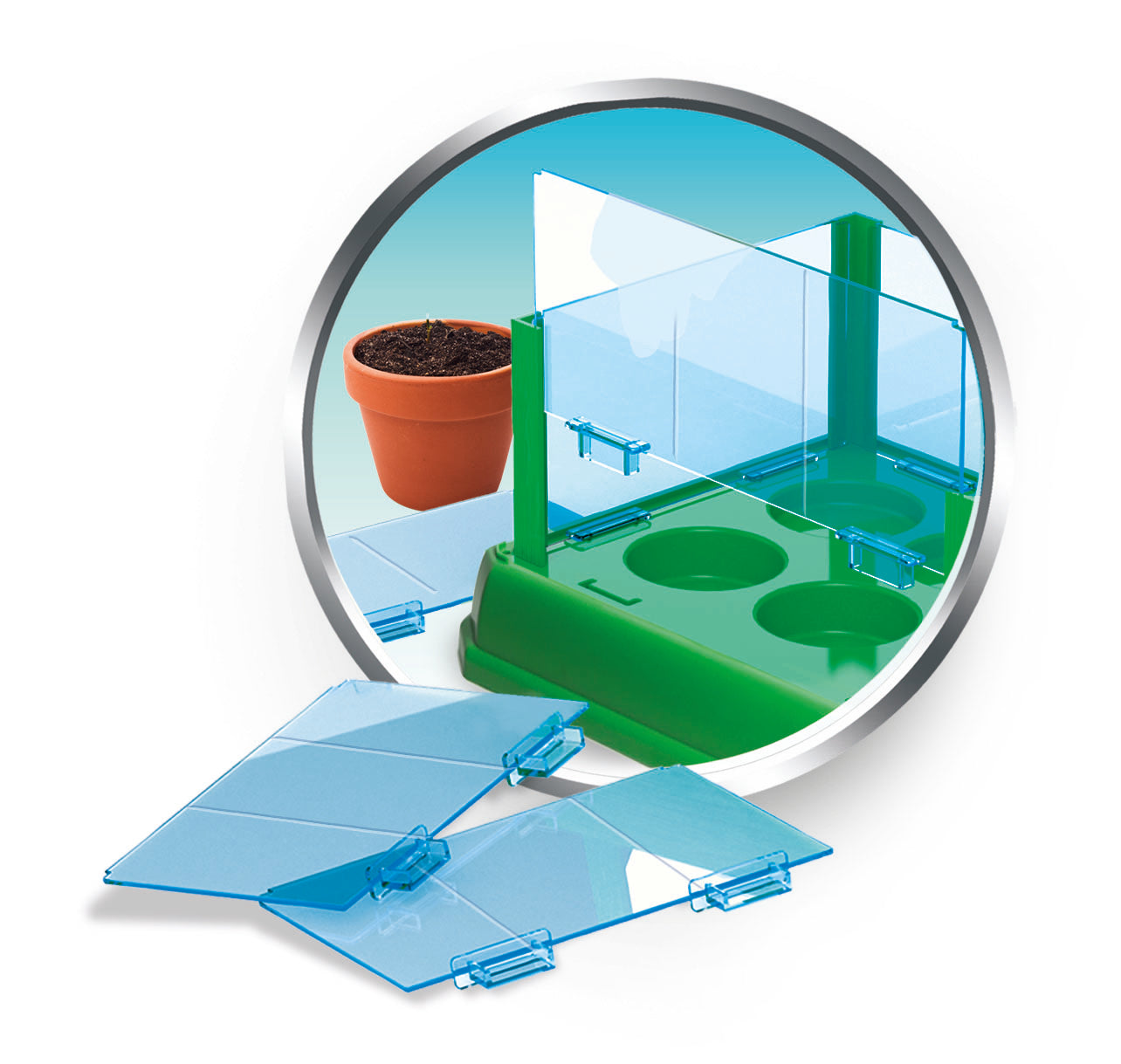 Cu o sera din plastic gata de asamblare, seminte si ghivece biodegradabile, vei fi gata sa descoperi lumea vegetala! Continutul setului componentele de plastic( baza, coloane de sustinere, pereti transparenti, acoperis) a serei, ghivece biodegradabile, turba, paharut cu capac, pipeta, spatula, penseta, seminte biologice si un manual de instructiuni pentru experimente sigure explicate pas cu pas.
