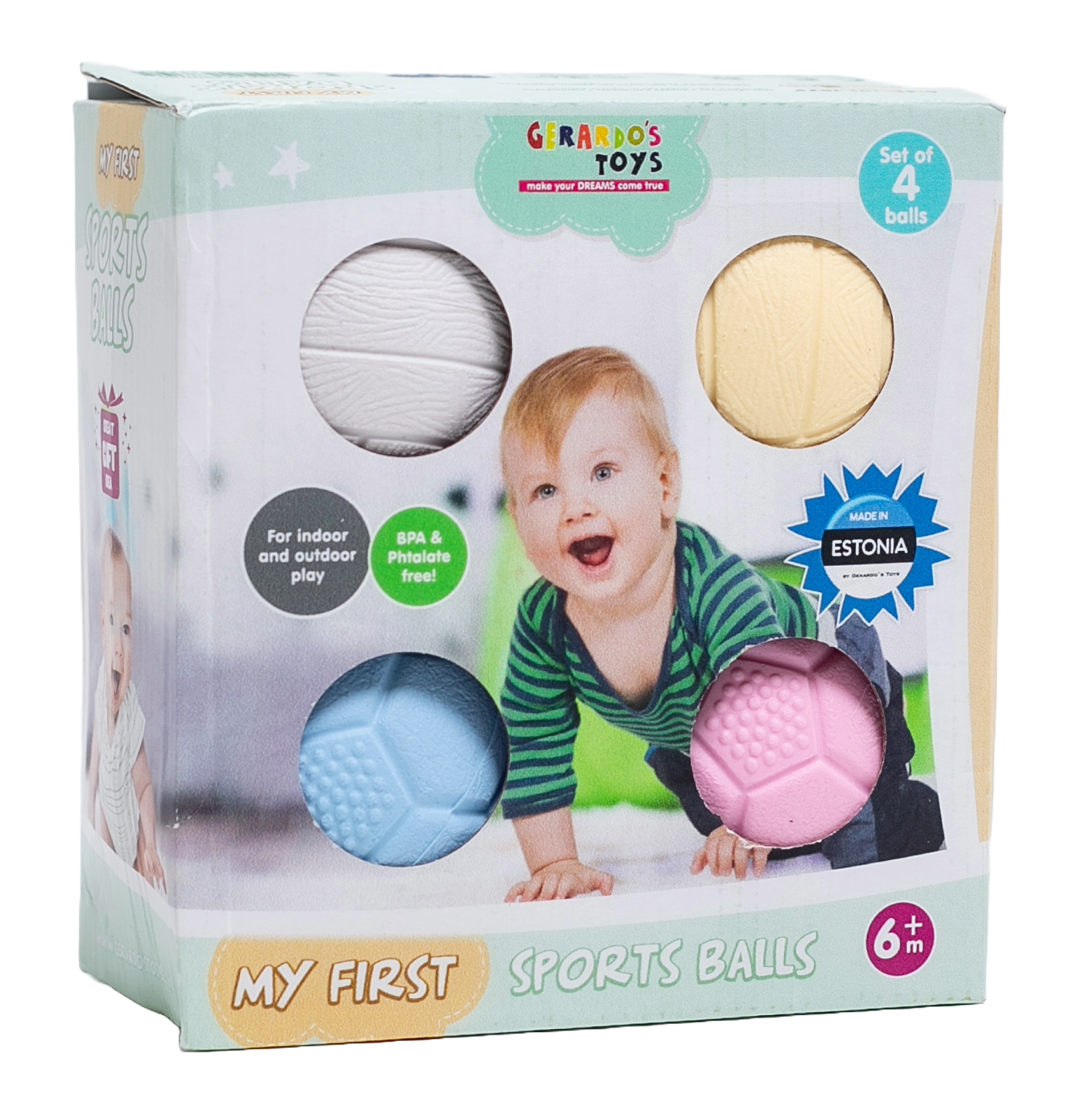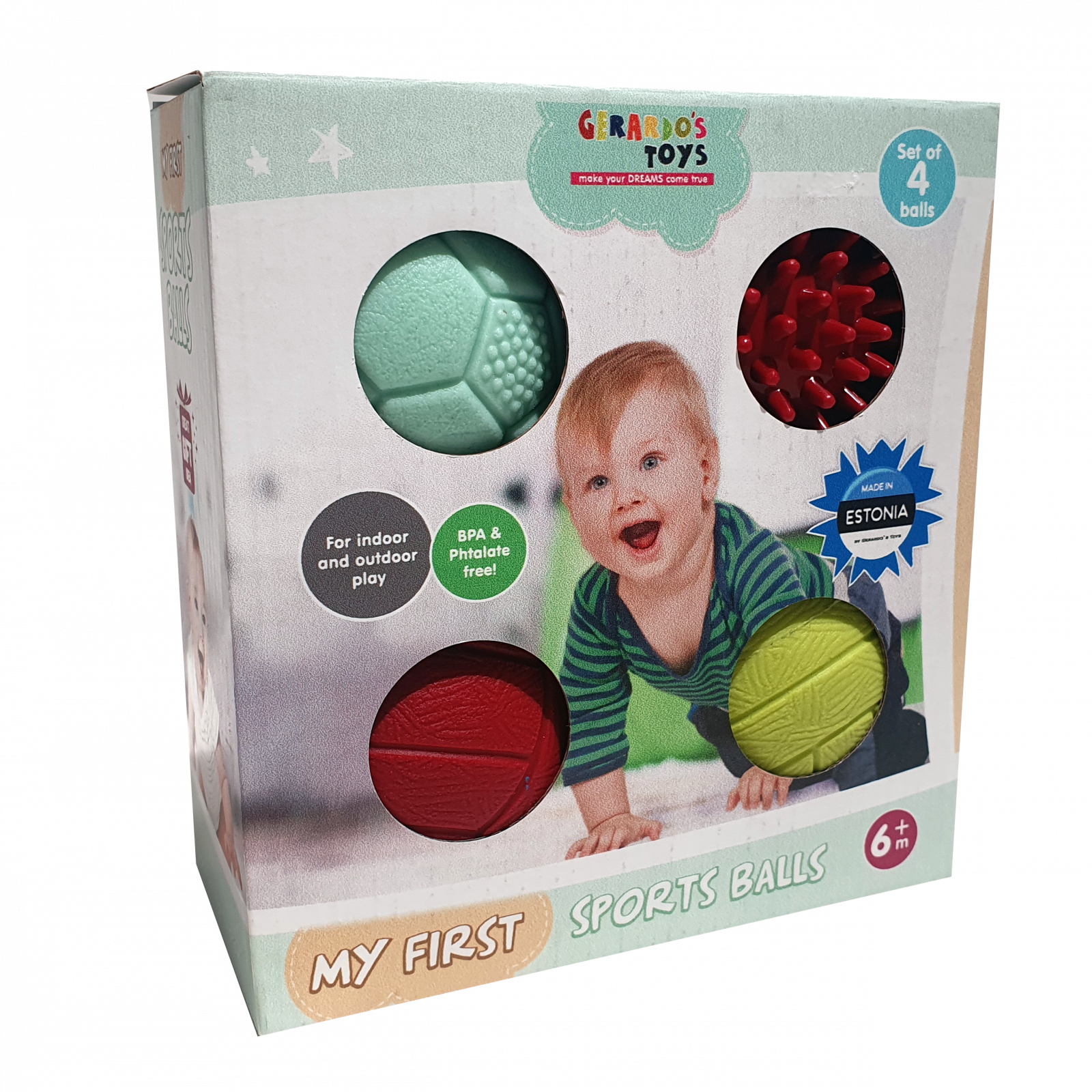 Setul include 4 mingi de sport cu diferite forme si culori.