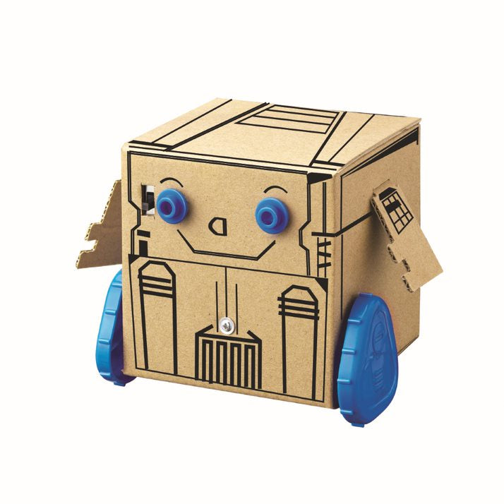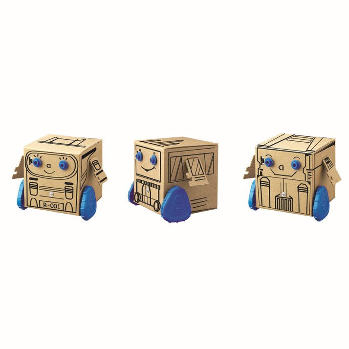 Reutilizati cutia pachetului pentru a construi un robot. Este un proiect stiintific cool, verde si creativ. Contine 1 ambalaj cu instructiuni detaliate, 1 axa cu angrenaj, 5 suruburi, fire, 1 motor cu fire, 2 capace terminale, corp si accesorii din plastic robot, 1 capac motor.