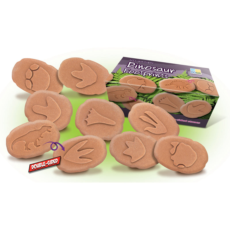 Perfect pentru a încuraja abilitățile de investigație timpurie pe măsură ce copiii examinează, compară și sortează cele opt urme: Apatosaurus, Deinonychus, Hypsilophodon, Iguanodon, Quetzalcoatlus, Stegosaurus, Triceratops și Tyrannosaurus Rex.