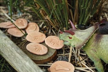 Aceste amprente interesante sunt garantate pentru a starni curiozitatea copiilor și a le capta imaginația. Fiecare piatră prezintă o amprentă de dinozaur pe o parte și proprietarul acesteia pe cealaltă.
