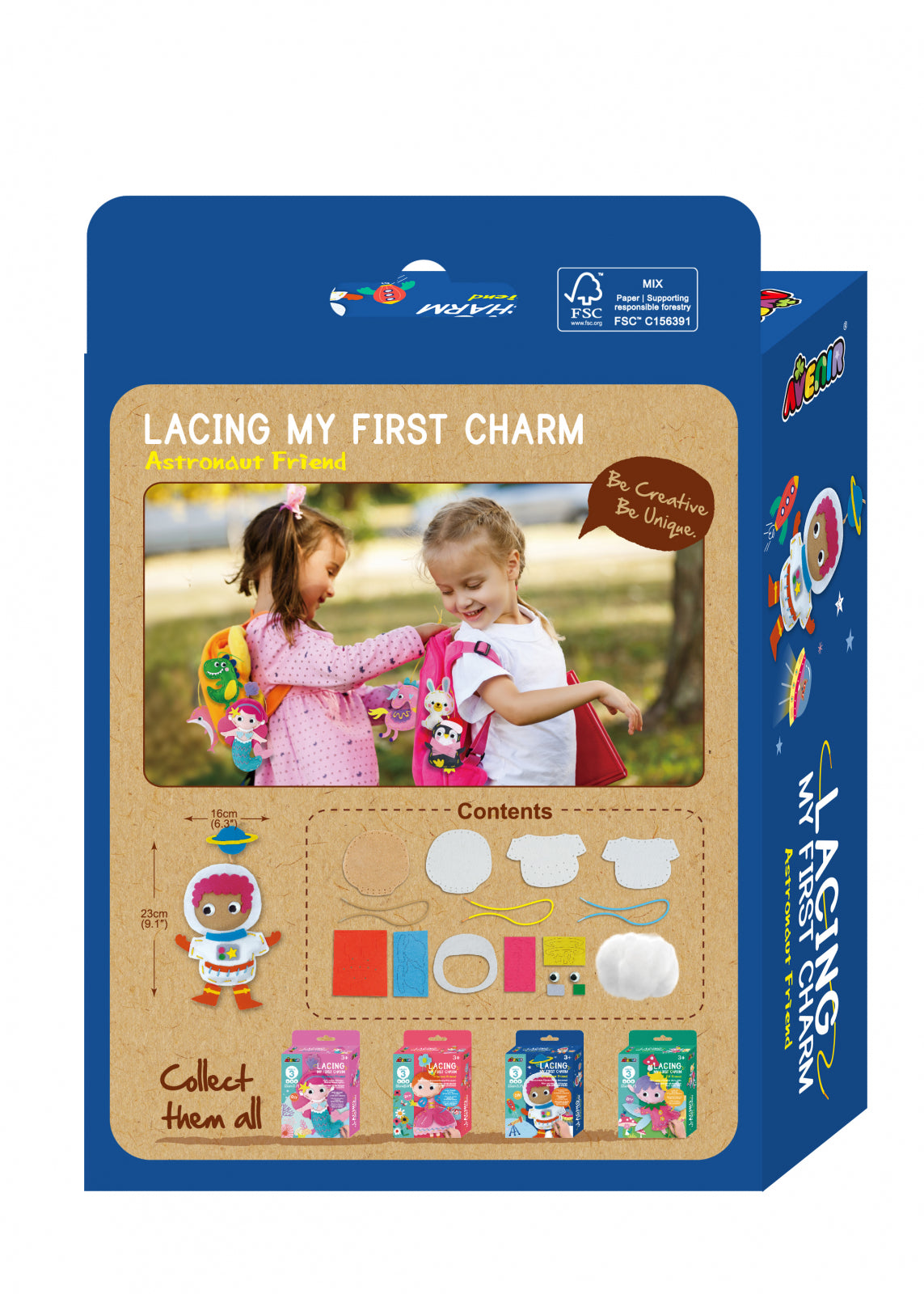 Conceput pentru mâini mai mici, cu fir gros de siret și găuri mari, Lacing My First Charm Astronaut Friends conține 1 personaj astronaut distractiv și ușor de făcut, cu care să creați și să vă jucați.