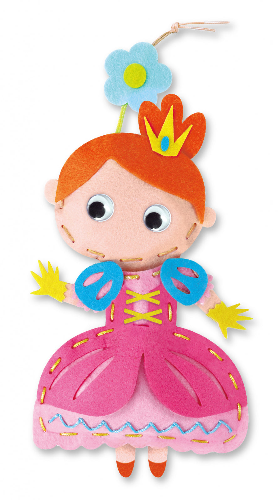 Acest kit conține 1 personaj adorabile cu tematică printese, împreună cu foi de pâslă pretăiate, autocolante decorative din pâslă, ochi de plastic, umplutură din bumbac și șireturi colorate.