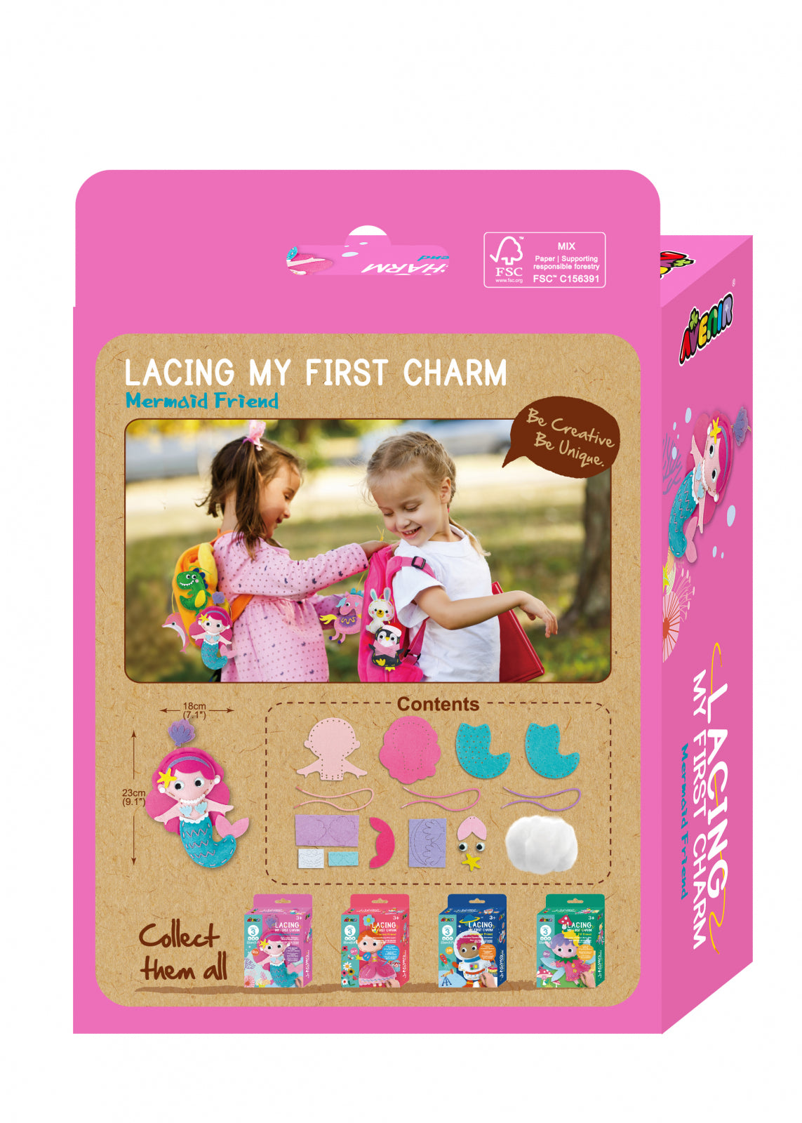 Conceput pentru mâini mai mici, cu fir gros de siret și găuri mari, Lacing My First Charm Mermaid Friends conține 1 personaj sirena distractiva și ușor de făcut, cu care să creați și să vă jucați.