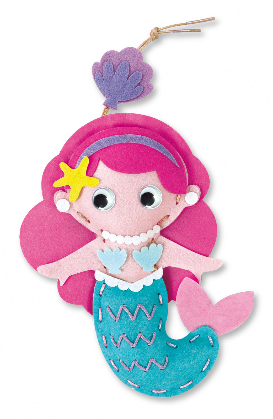 Acest kit conține 1 personaj adorabil cu tematică sirena, împreună cu foi de pâslă pretăiate, autocolante decorative din pâslă, ochi de plastic, umplutură din bumbac și șireturi colorate.