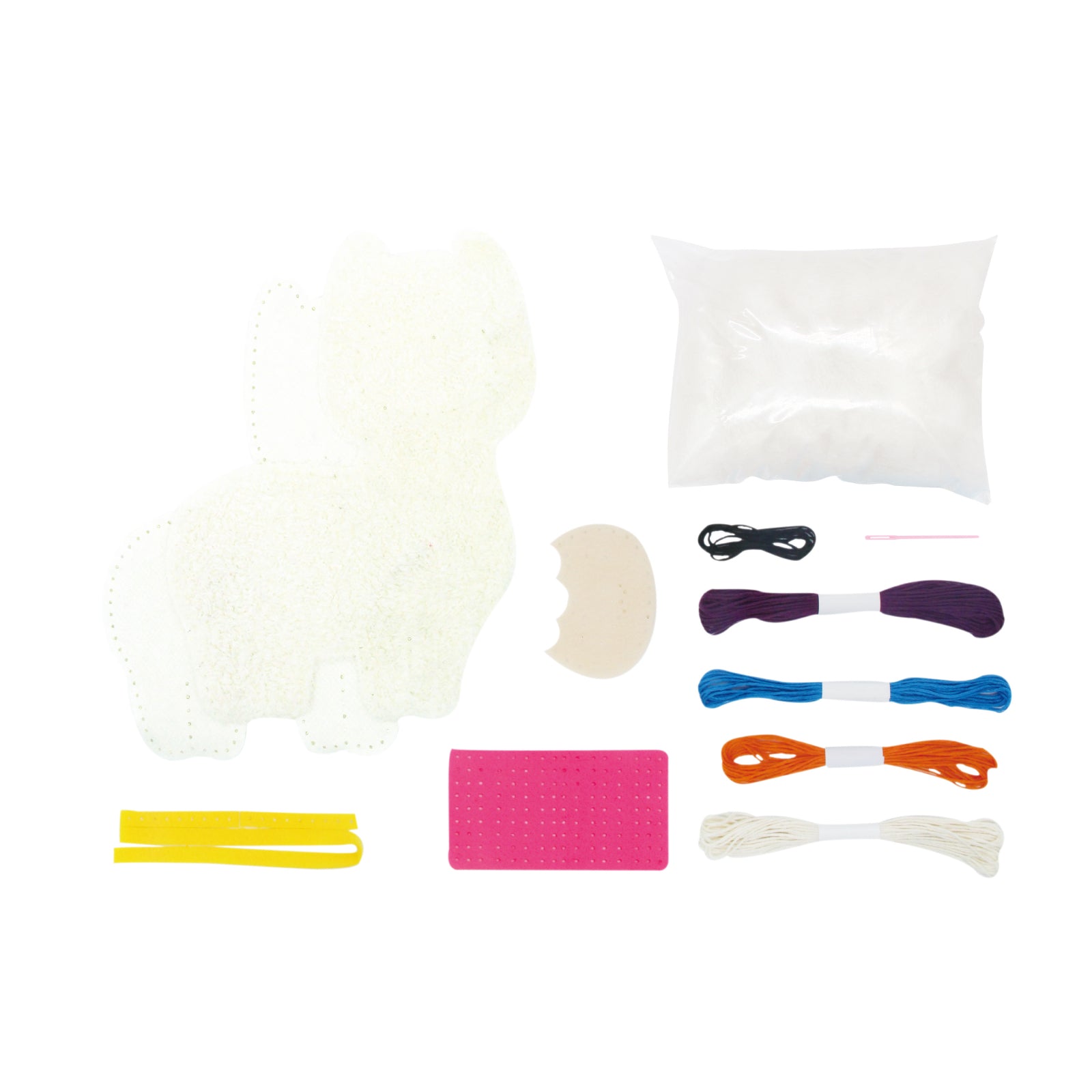 Contine: bucăți de pluș; bucăți de pâslă; fire; bumbac; 1 ac de plastic