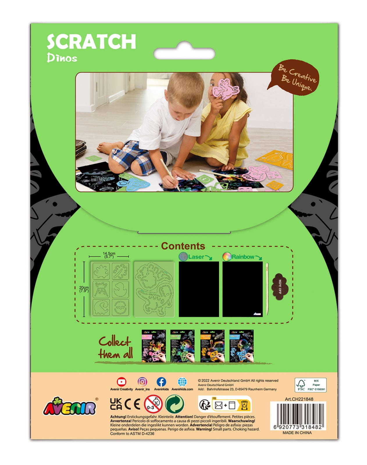 Cu "Scratch with Stencils", cei mici pot crea opere de artă uimitoare folosind șabloanele incluse și tehnica de scratch, descoperind bucuria și satisfacția în fiecare desen realizat.