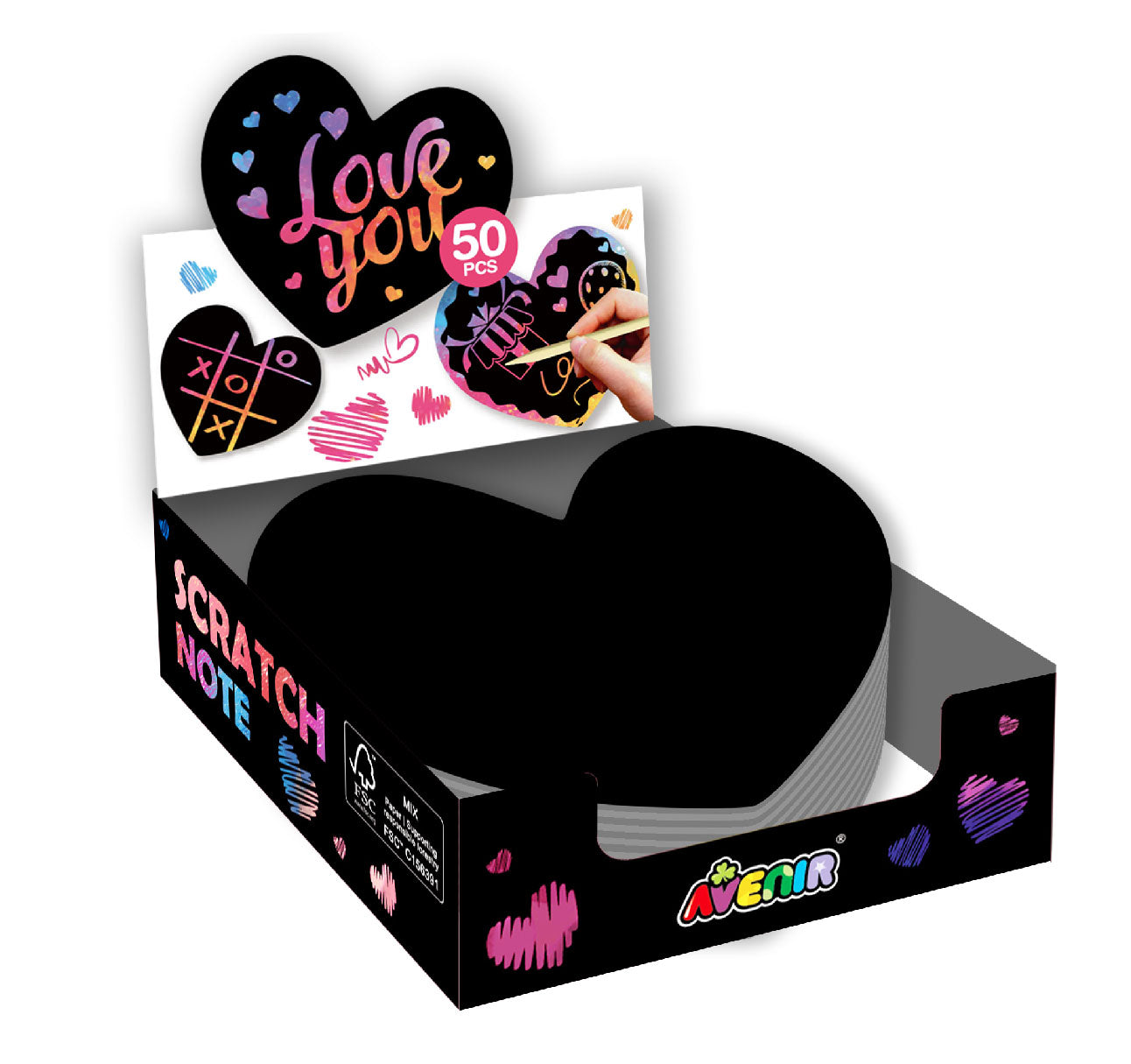 Linia de seturi razuibile de la Avenir este indeosebi apreciata pentru ilustratiile sale fantastice. De asemenea, parintii pot alege cu usurinta dintr-o gama foarte variata atat pe tematici dar si pe varste, existand seturi potrivite atat pentru varste mici (3 ani+) cat si pentru varste mai mari ( 5 ani, 7 ani), dand astfel ocazia fiecarui copil sa isi exprime creativitatea in functie de abilitati sale. Contine: 50 cartonașe de răzuit in forma de inima ; 2 instrumente de răzuit, o bucata material textil pentru a sterge.