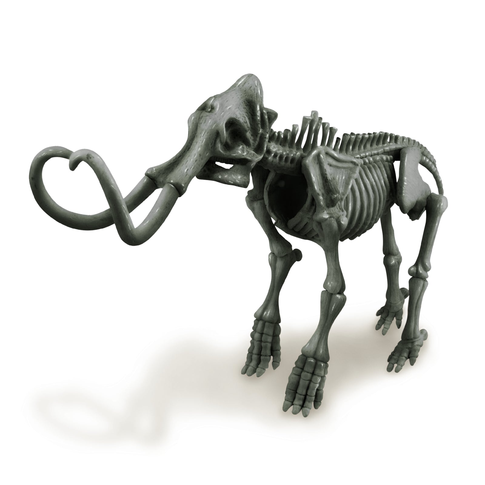 Include bloc de ipsos cu schelet Mamut încorporat, unealtă de săpat, perie, ceară moale pentru poziționarea fosilei, afișaj din carton cu platforma și fapte amuzante. Instrucțiuni detaliate de asamblare și îngrijire incluse. Scheletul măsoară aproximativ 19 cm înălțime când este asamblat.