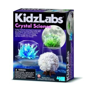 Efectuați o serie de experimente chimice cu acest kit educațional 4M pentru a vă cultiva propriul set de clustere de cristal Aquamarine, clustere de cristal Glow-in-the-Dark Moon și un copac de cristal.