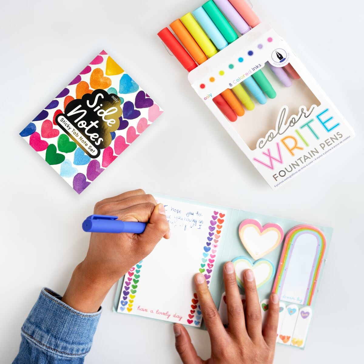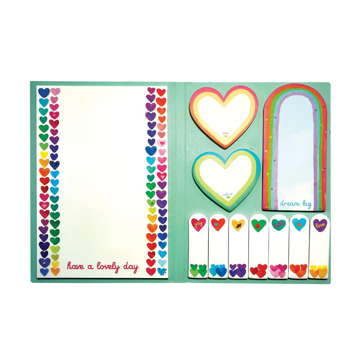 • Taburile și blocurile lipicioase au o temă inimă și curcubeu