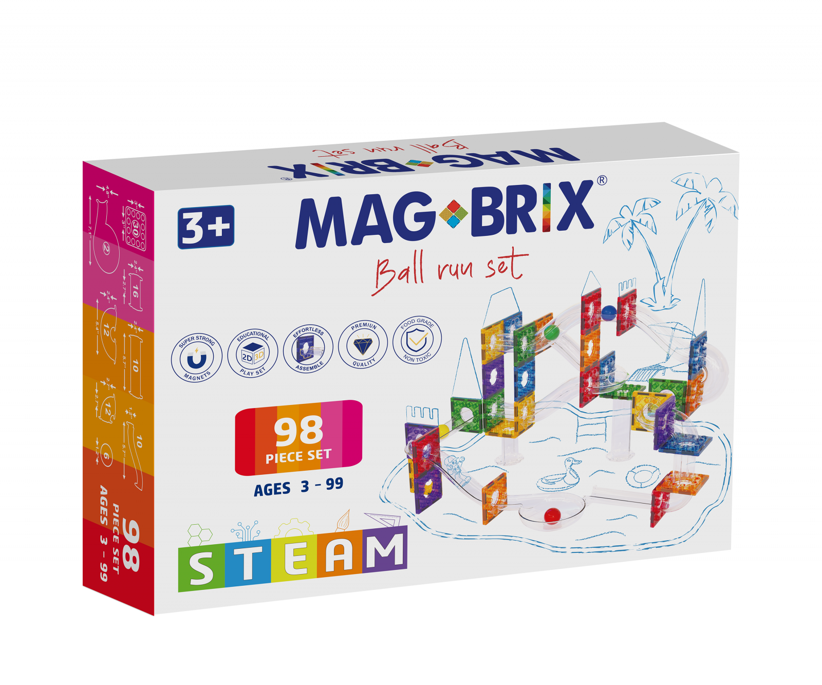 Setul magnetic Magbrix Ball Run contine 98 piese in culori vibrante: