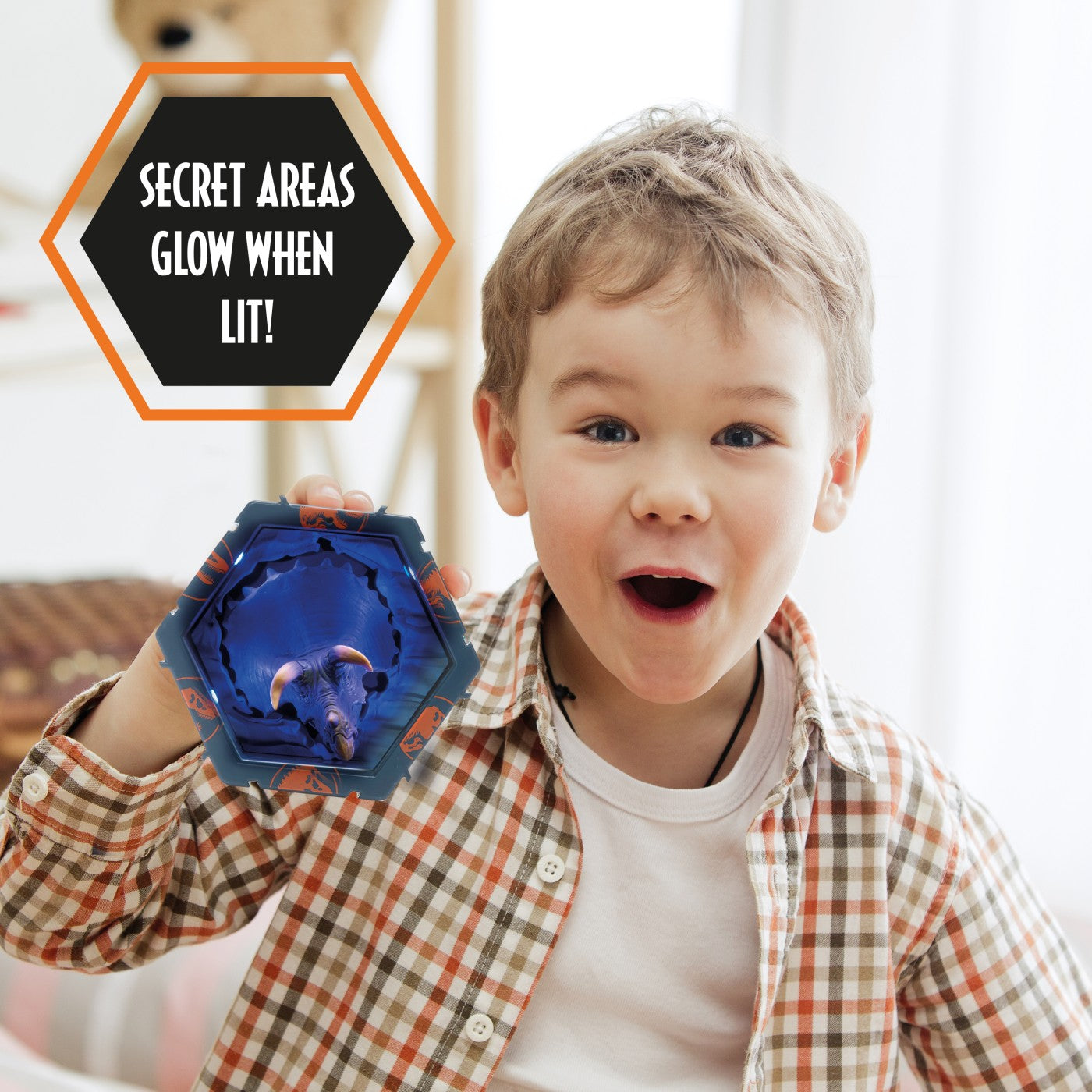 🦕 WOW! PODS – Triceratops cu Lumină UV și Senzor de Mișcare